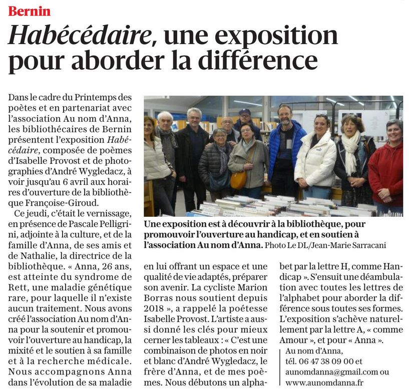 Anna au quotidien Exposition « HABECEDAIRE » est invitée par la Médiathèque de BERNIN Publié par admin le 7 février 202410 mars 2024