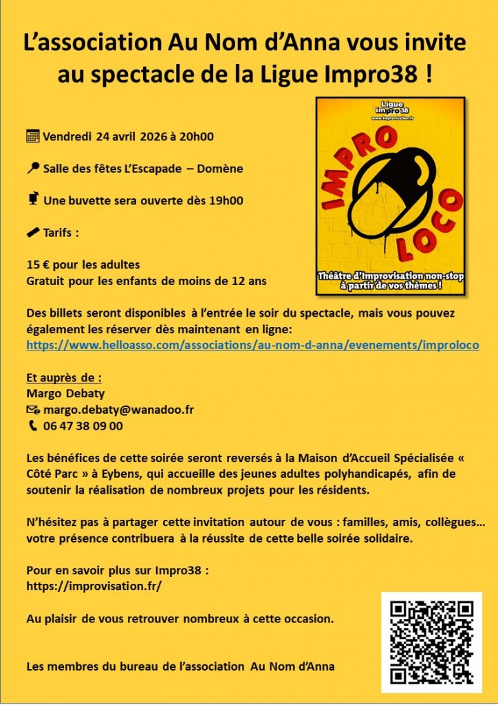 Anna au quotidien Ligue Impro38 à Domène le 24 avril ! Publié par admin le 15 avril 202615 avril 2026