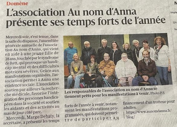 L’Assemblée Générale de l’association Au nom d’Anna s’est tenue le lundi 23 mars 2026 à 20h à Domène.